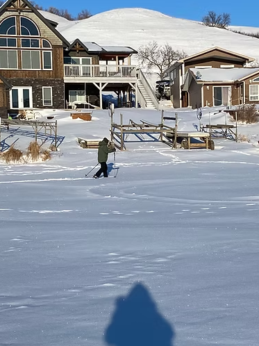 As we are driving out to Pasqua Lake, I was discussing with Andrew about snowshoeing on the lake.  Of course, he was refusing and afraid.  I don’t think he gets it, that the lake is frozen and is safe to go on it.  I am thinking he couldn’t comprehend it totally.  Even though he could see all the cars, the ice fishing shacks and the people on the lake, he is still not sure.